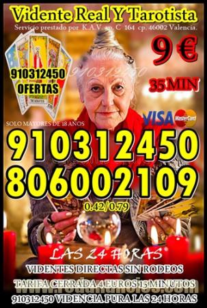 Grandes ofertas en Videncia Natural, Tarot, Numerología, Runas, Péndulo, Alta Magia, Sabiduría, Experiencia Profesionalidad. 910 312 450 Las 24 horas. Consulta por Visa 4 € 15 min/ 7 € 25min/ 9€ 35min. / 12€ 45min . 17€ 70. 20€ 80min consulta nuestras ofertas en visa /master card CONSULTA EL TAROT VISA de Los Ángeles el más certero vía online 806002109. Coste min. 0,42/0,79 cm € min red fija/móvil. Siente la sensación de hablar con auténticas expertas. Llámanos y comprueba lo que significa un Tarot de Calidad Toda España La llamada se corta sola al terminar el tiempo contratado/ Impuestos incluidos .Servicio prestado por K.A.V. ap. C 164 cp. 46002 Valencia. Servicio de entretenimiento y ocio para mayores de 18 años.
