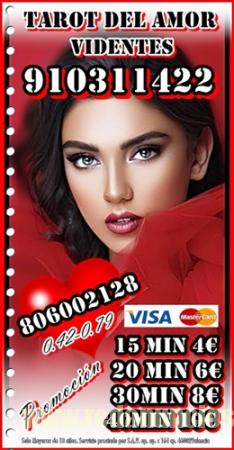 Videncia y Tarot del Amor 910311422 VISA desde 4€ 15 min/ 6 € 20min/8€ 30min /12€ 45min. . 17€ 70 min. 20€ 90min .. 806002128 desde Coste min. 0,42/0,79 cm € min red fija/móvil. Soy vidente profesional Llevo más de 30 años ayudando a personas en situaciones difíciles. Fechas. Te garantizo una consulta de alta calidad, déjame decirte lo que vendrá a tu vida, con tan solo oír tu voz Alta experiencia en tarot del amor , de Pareja ,Amistad , también en temas Laborales, Familiares, Económicos… videntes psíquicas expertas Servicio prestado por S.A.V. ap. c 164 cp. 46002 Valencia. Solo mayores de 18 años. Llamada a teléfono sin coste adicional. Visa 910311422 / 806002128 desde Coste min. 0,42/0,79 cm € min red fija/móvil. Videncia, Tarot, Tirada del Amor, rituales, péndulo, Numerología, Runas, sueños. Tarot del amor,tarot certero,tarot barato, Tarot,tarot económico,tarot fiable,tarot telefónico,tarot visa,tarot seguro,tarotistas,tarotistas buenas,videncia,videntes,vidente real,tarot 806,tarot