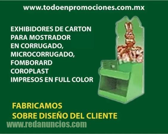 EN EL 55 55 15 28 57 ENCUENTRAS EXHIBIDORES PLAGABLES, DESARMABLES PARA FACIL TRANSPORTACIÒN. ELABORADOS EN CARTÓN Y COROPLAST DECORADOS A TODO COLOR EN PAREDES, CHAROLAS Y CENEFAS.