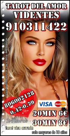 TAROT VISA CON TARIFA CERRADA /TAROT DEL AMOR /VIDENCIA 910311422 VISA desde 4€ 15 min/ 6€ 20min/ 8€ 30min//10€ 40min /15€ 55min / 17€ 70min/ 20€ 90min...806002128 desde Coste min. 0, 42/0, 79 cm € min red fija/móvil. Soy vidente profesional Fechas. Te garantizo una consulta de alta calidad, déjame decirte lo que vendrá a tu vida, con tan solo oír tu voz Alta experiencia en tarot del amor , de Pareja , Amistad , también en temas Laborales, Familiares, Económicos… videntes psíquicas expertas Servicio prestado por S.A.V. ap. c 164 cp. 46002 Valencia. Solo mayores de 18 años. Llamada a teléfono sin coste adicional. Visa 910 311 422 / 806 002 128 desde Coste min. 0, 42/0, 79 cm € min red fija/móvil. Videncia, Tarot, Tirada del Amor, rituales, péndulo, Numerología, Runas, sueños.