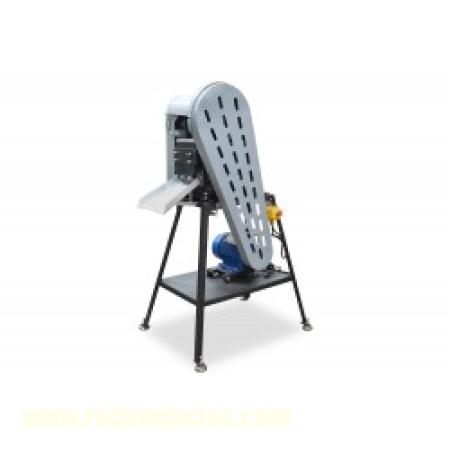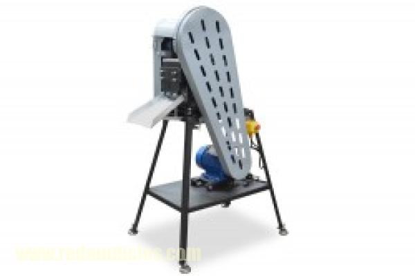 La máquina está dotada de dos bandas de 150 mm de anchura que, de modo fiable, prensan el material introducido. La banda transportadora está instalada a lo largo de toda la máquina, por tanto, no es necesario empujar el material manualmente. Para accionar las bandas sirven ruedas dentadas de alta calidad (por la falta de la cadena se mantiene la fuerza constante de presión).