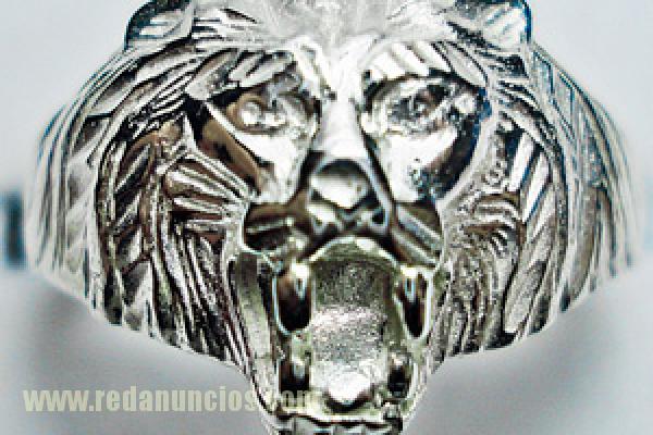 colgantes y sellos de cabeza león en oro y plata distintas formas y tamaños.