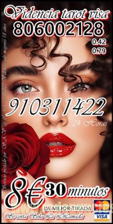 TAROT VISA CON TARIFA CERRADA /TAROT DEL AMOR /VIDENCIA 910311422 VISA desde 4€ 15 min/ 6€ 20min/ 8€ 30min//10€ 40min /15€ 55min / 17€ 70min/ 20€ 90min...806002128 desde Coste min. 0, 42/0, 79 cm € min red fija/móvil. Soy vidente profesional Fechas. Te garantizo una consulta de alta calidad, déjame decirte lo que vendrá a tu vida, con tan solo oír tu voz Alta experiencia en tarot del amor , de Pareja , Amistad , también en temas Laborales, Familiares, Económicos… videntes psíquicas expertas Servicio prestado por S.A.V. ap. c 164 cp. 46002 Valencia. Solo mayores de 18 años. Llamada a teléfono sin coste adicional. Visa 910 311 422 / 806 002 128 desde Coste min. 0, 42/0, 79 cm € min red fija/móvil. Videncia, Tarot, Tirada del Amor, rituales, péndulo, Numerología, Runas, sueños.