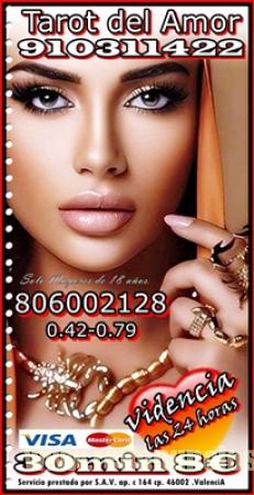 TAROT VISA CON TARIFA CERRADA /TAROT DEL AMOR /VIDENCIA 910311422 VISA desde 4€ 15 min/ 6€ 20min/ 8€ 30min//10€ 40min /15€ 55min / 17€ 70min/ 20€ 90min...806002128 desde Coste min. 0, 42/0, 79 cm € min red fija/móvil. Soy vidente profesional Fechas. Te garantizo una consulta de alta calidad, déjame decirte lo que vendrá a tu vida, con tan solo oír tu voz Alta experiencia en tarot del amor , de Pareja , Amistad , también en temas Laborales, Familiares, Económicos… videntes psíquicas expertas Servicio prestado por S.A.V. ap. c 164 cp. 46002 Valencia. Solo mayores de 18 años. Llamada a teléfono sin coste adicional. Visa 910 311 422 / 806 002 128 desde Coste min. 0, 42/0, 79 cm € min red fija/móvil. Videncia, Tarot, Tirada del Amor, rituales, péndulo, Numerología, Runas, sueños.