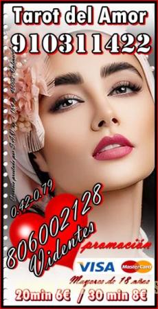 TAROT VISA CON TARIFA CERRADA /TAROT DEL AMOR /VIDENCIA 910311422 VISA desde 4€ 15 min/ 6€ 20min/ 8€ 30min//10€ 40min /15€ 55min / 17€ 70min/ 20€ 90min...806002128 desde Coste min. 0, 42/0, 79 cm € min red fija/móvil. Soy vidente profesional Fechas. Te garantizo una consulta de alta calidad, déjame decirte lo que vendrá a tu vida, con tan solo oír tu voz Alta experiencia en tarot del amor , de Pareja , Amistad , también en temas Laborales, Familiares, Económicos… videntes psíquicas expertas Servicio prestado por S.A.V. ap. c 164 cp. 46002 Valencia. Solo mayores de 18 años. Llamada a teléfono sin coste adicional. Visa 910 311 422 / 806 002 128 desde Coste min. 0, 42/0, 79 cm € min red fija/móvil. Videncia, Tarot, Tirada del Amor, rituales, péndulo, Numerología, Runas, sueños.